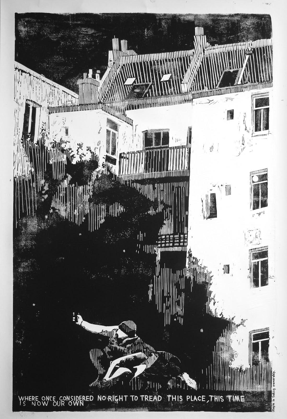 This Is How It Goes #4/Utopia Is Taking Ownership (2014), lino print on paper (90x140cm) |